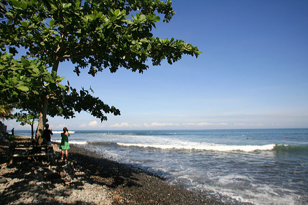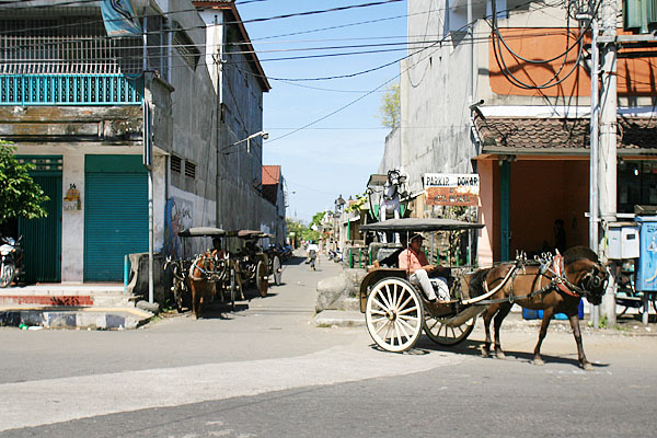 | クタから約2時間。馬車が現役で活躍する街ヌガラ。街の所々に馬車ステーションがあり、いつまでもこの光景が残って欲しいと切に望みたい。その途中にあるのがサーファーにも有名なメデウイビーチ。玉砂利のビーチ。 |