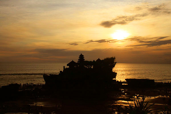 | クタの西方。クタから小一時間で行くことの出来る夕日のポイント。海の中に出来た寺院は干潮の時だけ近くに行くことが出来る。 |
