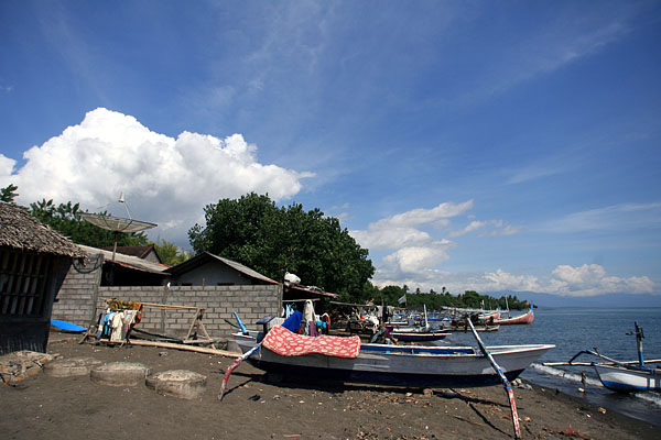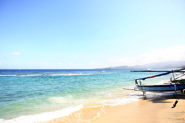 | クタからはパダンバイ・チャンディダサまではプラマ社のシャトルバスが1日数回運行されている。パダンバイまでは2時間半、そこからチャンディダサまでは小型のバスに乗り換えていくことになり、乗り換え時間も含めるとクタから3時間半程度。車をチャーターした場合、バイパスを一気に東に走るので時間は短縮される。パダンバイはロンボクへのフェーリが発着する港。外国航路でこの港から入国することも出来るほど。チャンディダサは白砂のビーチとして有名。 |