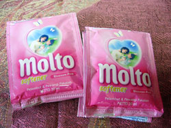 ご存じモルト。インドネシアの香りと言ってもイイほど有名な人気がありますよね。 この写真の柔軟剤タイプと柔軟剤から柔軟効果を取ったペワンギなどがあります。右側のウルトラは2倍濃縮タイプです。今までモルトをお試しでなくダウニーをお使いの方には、ぜひモルトの香りもおすすめです。