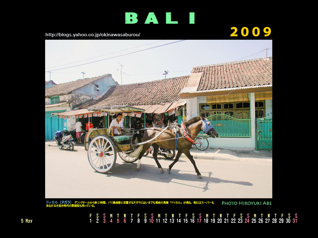 5月 ドッカル(ヌガラ) デンパサールから約2時間、バリ島西部に位置するヌガラにはいまでも現役の馬車「ドッカル」が残る。街にはスーパーもあるが古き良き時代の雰囲気も残っている。 |